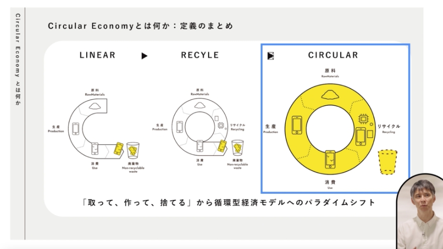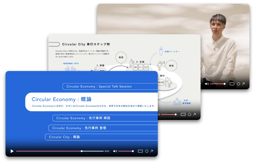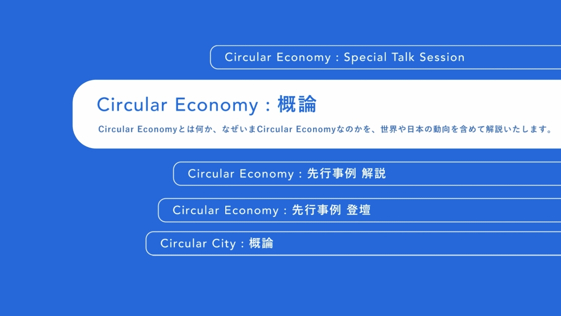 プログラム。 - サーキュラーエコノミーの基本概念、グローバルの潮流など、基礎的かつ必須の内容を体系⽴てて整理し、網羅的に解説します。